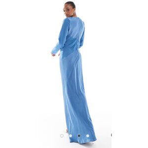 • Maxi Formal Long Sleeve Maxi Wedding Cocktail Wedding Guess Tall Blue wedding guest semi formal cocktail party event avant garde draped maximalist elegant statement slip fitted mixed media feminine maxi long gala ball gown