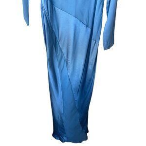 Asos Long Sleeve Satin Maxi Dress Size 16T Asymmetrical Formal Event Elegant