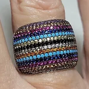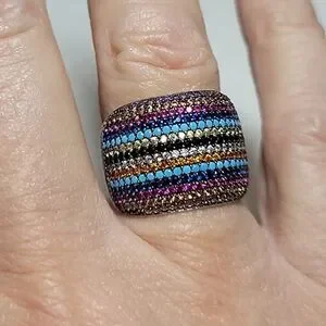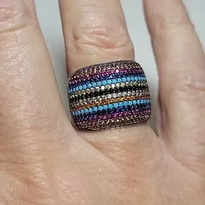 🆕 925 Sterling Silver Luxury Rainbow Cocktail Statement Ring in women’s size 9