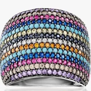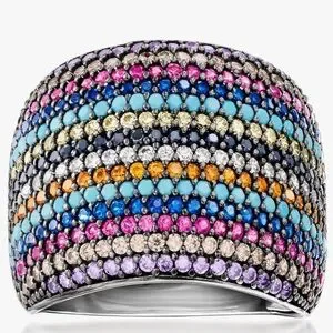 🆕 925 Sterling Silver Rainbow Cocktail Ring Bling Gemstone Statement Glam Luxury