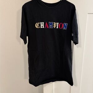 Stylish black tee with vibrant Champion logo. Perfect for everyday wear.