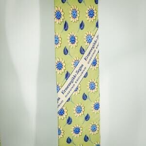 Ermenegildo Zegna Designer Green Blue Floral Print 3.5 inches Classic Width Career Work Tie Necktie