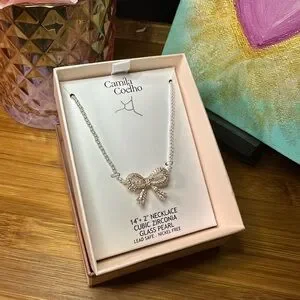 Camila Coelho elegant and stylish, Silver Cubic Zirconia Bow Necklace adds a touch of sparkle to any outfit. Perfect for any occasion and any outfit whether it be a dress or T shirt and jeans. This beautiful piece is a must have addition to any jewelry box. Great to wear day or night, to weddings, graduations or to give as a gift.