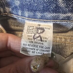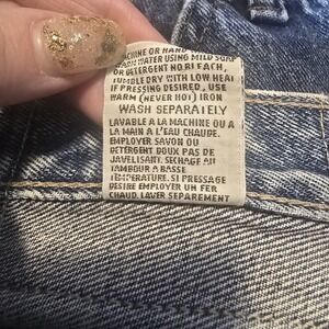 The product is a pair of vintage Squeeze jeans in a women's size 9. These straight-leg jeans feature an acid wash denim fabric in a classic blue color. The denim fabric is durable and versatile, perfect for everyday wear. The Squeeze brand adds a unique twist to the traditional denim style, making these jeans a fashionable and comfortable choice for any woman's wardrobe.