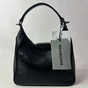 NEW BALENCIAGA BLACK LEATHER BB SOFT HOBO BAG