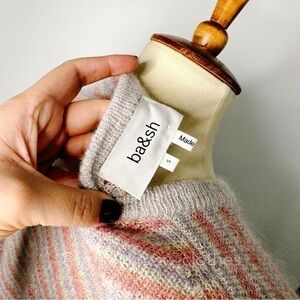 BA&SH, Simael, mohair blend sweater, wool blend, fuzzy knit, short sleeve sweater, puffed sleeve, striped knit, crew neck, rose pink lavender, Parisian style, French girl, Coquette, Retro 70s, Grandmacore