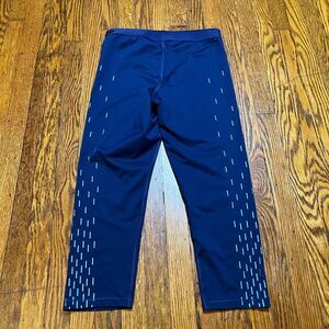 Nike Pro Reflective Print Cropped Capri Leggings Navy Blue Women's Size L