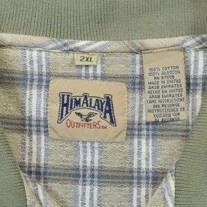 Himalaya Outfitters Plaid Green Beige Button Shirt 2XL Short Sleeve USA Cotton