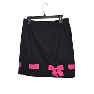 Black A-Line High Rise Knee-Length Skirt with Pink Bow. Y2K vibes. Size 6/Small. Stretchy. Lightweight. Textured cotton material. Back zipper. Excellent condition!