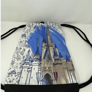 Stylish drawstring backpack featuring a Disney castle design. Perfect for Disney fans.