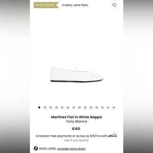 White Nappa leather Martinez Mary Jane flat from Tony Bianco Australia. Like new. Per website, this shoe runs large.