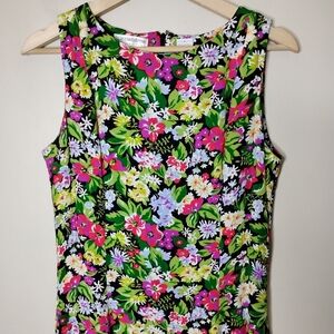 liz claiborne dress, vintage rayon dress, floral print dress, cottagecore midi, preppy vintage dress, modest floral dress, 90s liz claiborne, sleeveless floral midi, feminine rayon dress, retro spring dress, cottagecore fashion, vintage women’s clothing, romantic floral midi, preppy classic style, timeless vintage dress