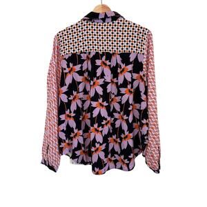 Maeve Anthropologie Alida Contrast Buttondown Shirt SZL Birds Mixed Pattern