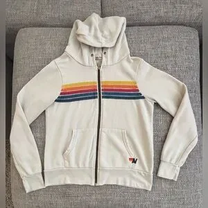 Aviator Nation Unisex Vintage White Rainbow Stripe Zip Hoodie (S) & Sweats (XS)