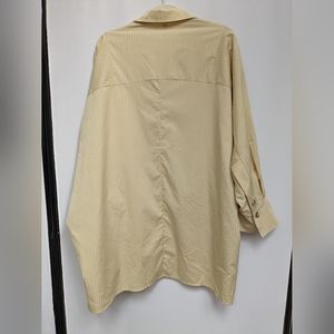 Featuring a button-up, curved hem, spliced color at hem. Relaxed and oversized. Can be used as a sleep shirt or blouse. It’s that perfect vintage style you can never find. Color is a butter yellow color.