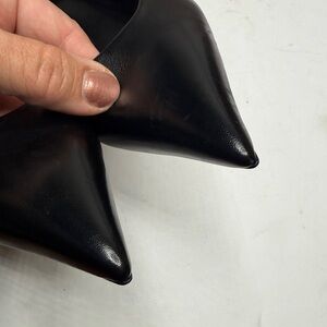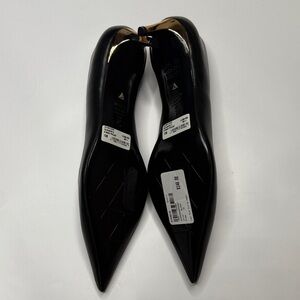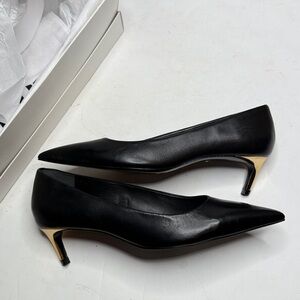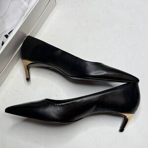 Elegant black heels with a sleek gold heel accent. Perfect for any occasion.