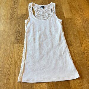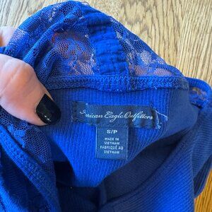 American Eagle Racerback Tank Bundle. The blue and white tanks are from American Eagle but the green one is actually from SO. Very similar style though! They all have lace detail on the back. The blue tank even has button detail on the lace. All size small. Maybe a tad bit of wash wear on the green tank but all still have tons of life left!