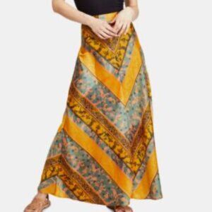NWT Free People Hawaii Honey Maxi Skirt in Green Gold & Peach Size 0