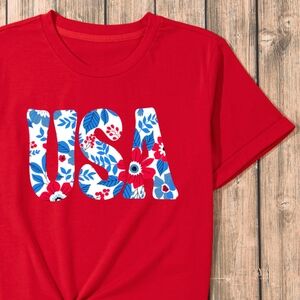 USA American Graphic Shirt Floral Patriotic Womens Top Lightweight Short Sleeve