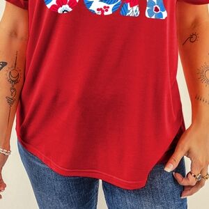 This classic red Americana-style t-shirt is ideal for the all-American woman !