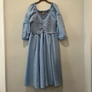 JessaKae Dress Women’s 1X Love Spell Blue Midi Smocked 3/4 Balloon Sleeve