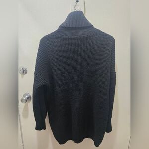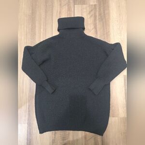 Chic black turtleneck sweater dress. Cozy and stylish for any occasion.