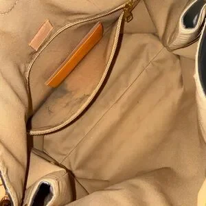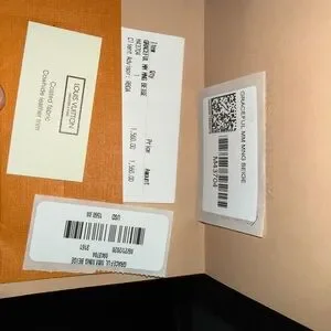 100% authentic. Worn once. Pictures of all receipts. Can send more pictures if requested. Small pen stain in zipper pouch.