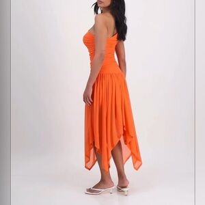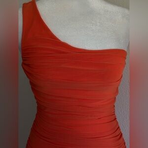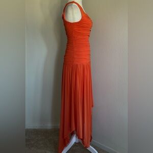 Bar III Women's One-Shoulder Handkerchief-Hem Orange Midi Dress