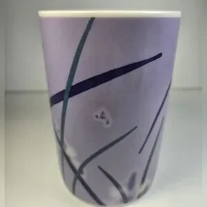 Stylish Starbucks ceramic mug with a purple exterior and white interior. Features a modern abstract design.