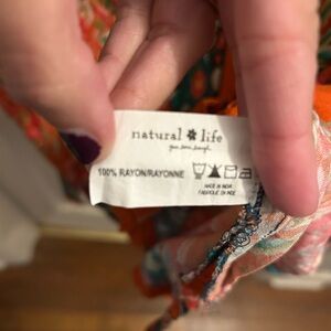 NATURAL LIFE tunic shirt women’s medium button front boho orange turquoise