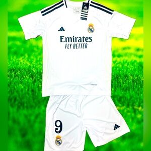 YOUTH Mbappe #9 Adidas Soccer Jersey Kids Kit Jersey + Shorts (MEDIUM)