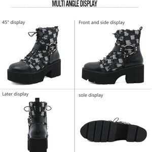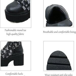 The round toe adds a touch of sophistication, while the black and gray plaid and decorative buckle design add interesting and playful elements, and the side zipper design makes it easy to put on and take off. They are a must-have for those who want to add a touch of style and elegance to their wardrobe.