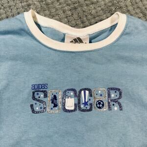 vintage y2k adidas soccer babydoll long sleeve tee baby blue purple tee M