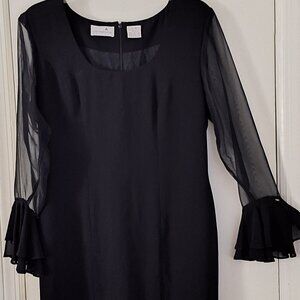 Liz Claiborne Classic Black Sheer Ruffle Cuff Sleeve Formal Maxi Dress Size 10