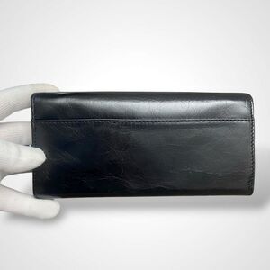 Hobo Continental Wallet Black Genuine Leather Long Bifold with Magnetic Closure