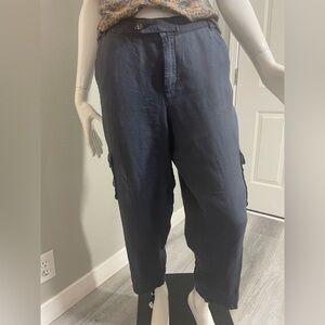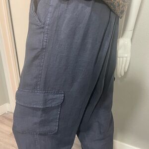 RACHEL Rachel Roy 💙 Blue Cargo Pants Relaxed Fit, size Large 100% Linen