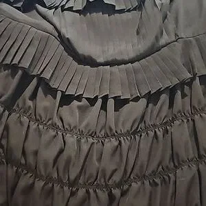 FOXIEDOX by Anthropologie Plisse Tiered Black Cold Shoulder Mini Dress