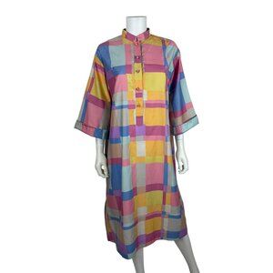 Vintage 70s Colorblock Dress Womens XL Pastel Artsy Forever Catherine Ogust Caftan