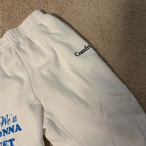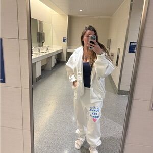 Size large zipper hoodie and sweatpants by Comft with added vinyl saying “going to the chapel” “and we’re gonna get married”. Worn twice