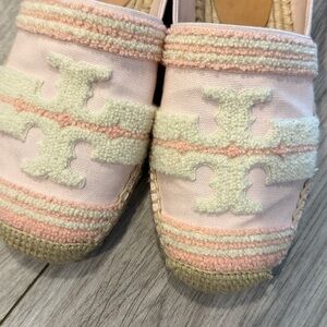 Elegant light pink espadrilles by Tory Burch. Perfect for casual wear. Size 9 only worn once around the house.