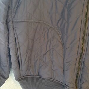 Chic quilted bomber jacket by Prana. Soft lavender hue. Ideal for layering and style.
