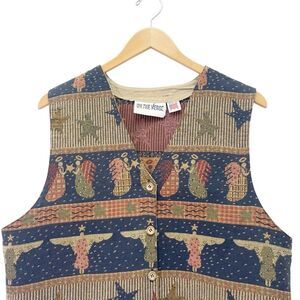 Vintage 90s Tapestry Vest Waistcoat Christmas Folksy Americana Angels Size Large