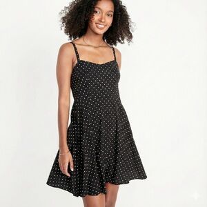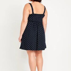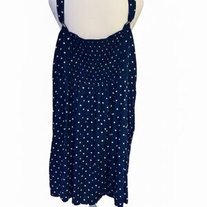 Navy Blue White Polka V-Neck Fit & Flare Mini Slip Dress 90s Style Size XXL