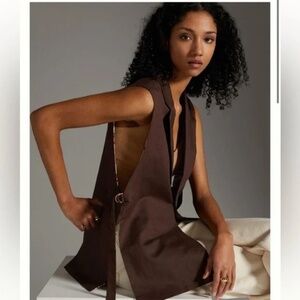 MAEVE - Anthropologie Brown Long Lapel Vest One Size