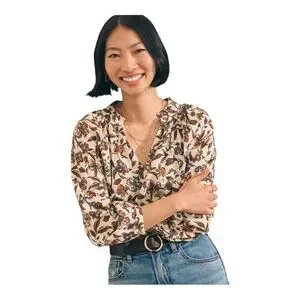 Description: Elevate your wardrobe with this lovely preowned Faherty Portia Linen Blouse, size XL. This flowy blouse features beautiful ruffle detailing and a relaxed fit that's perfect for any casual or chic occasion1. The pull-on design comes with full sleeves and button cuffs for added elegance.