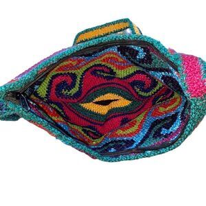Crocheted EUC Crossbody Messenger Bag Rainbow Wave Pattern Mid Size