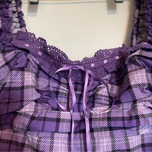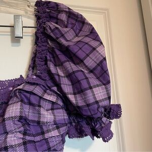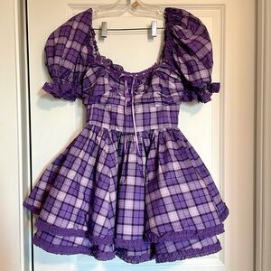 Selkie 2024 Fall Collection BNWT Purple Plaid Puffy Mini Dress with Corset Back