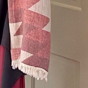 Southwest Aztec Blanket Wrap Jacquard Woven Organic Cotton Light Red Pink Gray