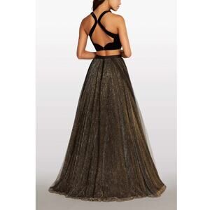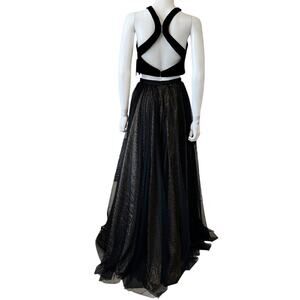 ALYCE PARIS STARRY NIGHT Black Gold Kalani Halter Top Velvet Prom Gown Size S