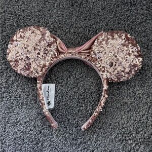 Disney Rose GoldSequin Minnie Mouse Ears Headband with Bow